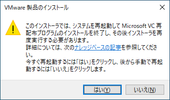 - もし、実行直後に「今すぐWindowsを再起動しますか?」と言われたら「はい」を選択する。再起動をして、再起動後にもう一度同じファイルをダブルクリックして実行する。
