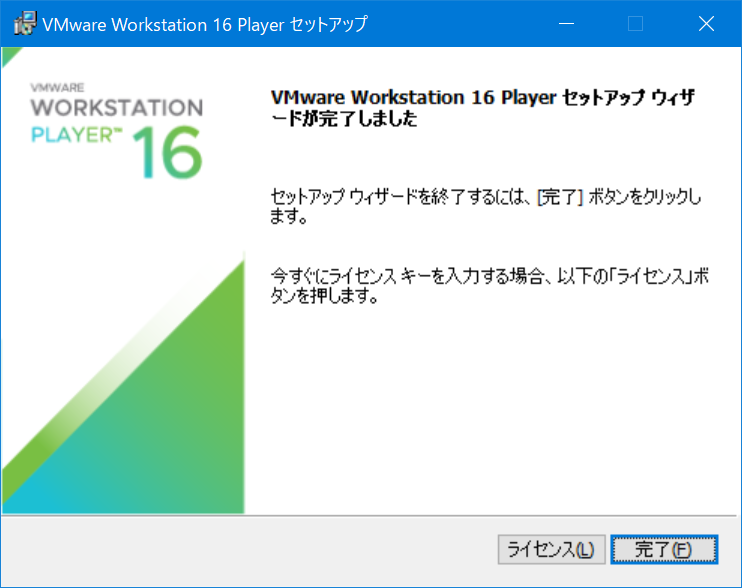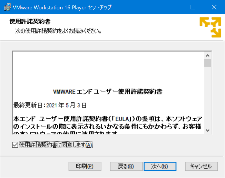 ここでは、WindowsマシンにVMware社のVMware Workstation Playerをインストールする方法を述べる。