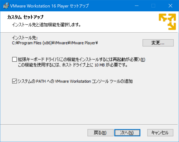 「システムのPATHへのVMware Workistationコンソールツール」の追加のチェックを入れる